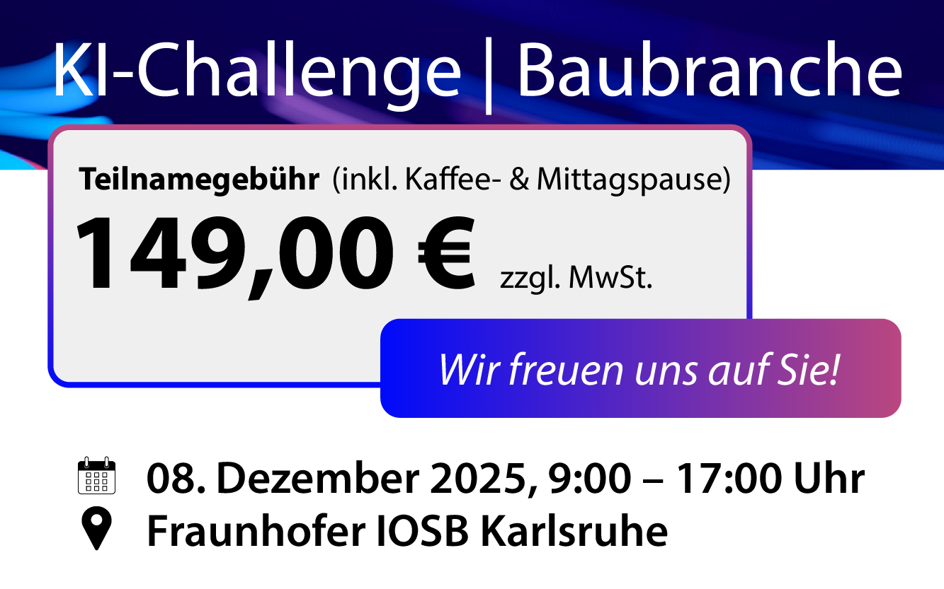Am 08. Dezember 2025 trifft sich die Baubranche mit Anbietern:innen von KI-Lösungen im Fraunhofer IOSB in Karlsruhe.